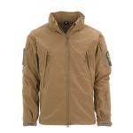 Softshellová bunda s odnímatelnou kapucí, vysokým límcem, kapsami na zipy a suchým zipem.