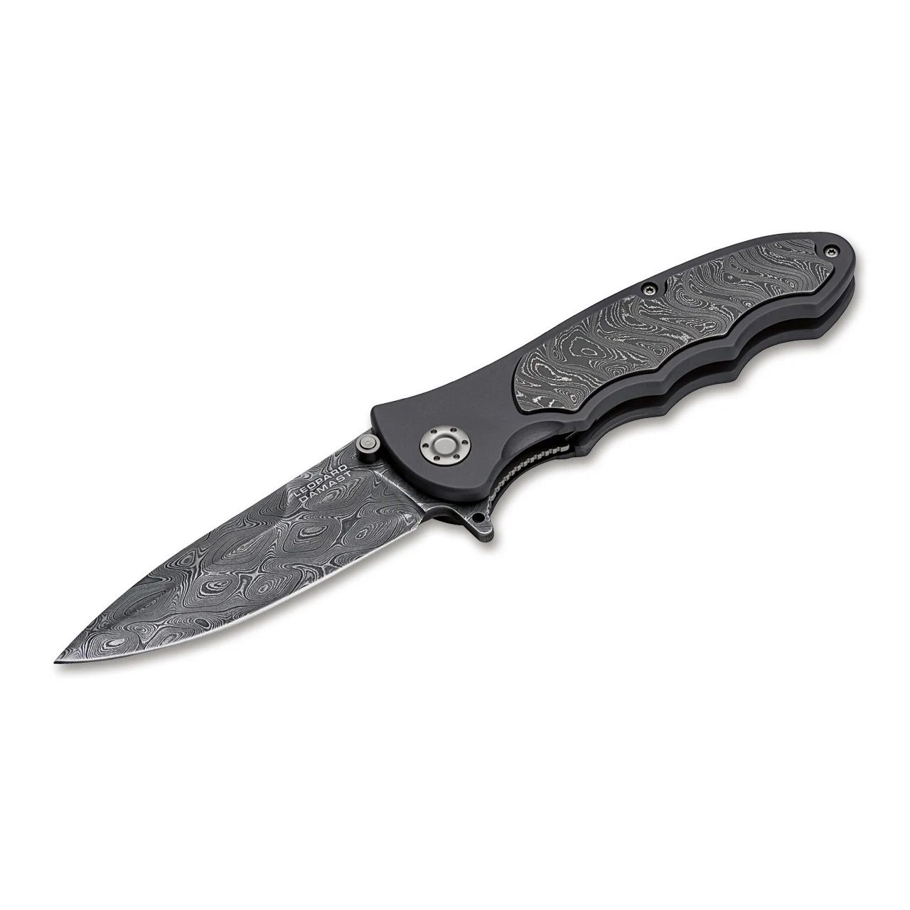 Má čepel s hladkou hranou z 300 vrstev damaškové oceli, která obsahuje ocel z tanku Leopard, jakož i nástrojovou a ložiskovou ocel. Otevírá se palcovým kolíkem nebo vyklápěčem Flipper, zajišťuje ji pojistka Linerlock.