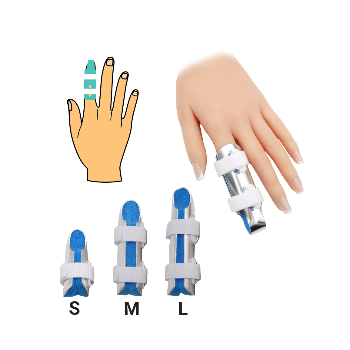 Fixátor prstu chrání vnitřní a vnější část článků prstu a rovněž slouží jako rychlé ošetření při poranění prstu. Fixátor je vyroben z lehkého, pevného hliníku a je vybaven měkkou pěnou, díky které je pohodlný při nošení, netlačí a zároveň chrání prst proti nadměrnému pocení. Fixuje se pomocí suchých zipů, které jsou jeho součástí, a tak je fixátor dostatečně pevný. Výborně pomáhá při zlomeninách, naražení či běžném poranění prstu, kdy chceme články prstů chránit před dalším podrážděním.