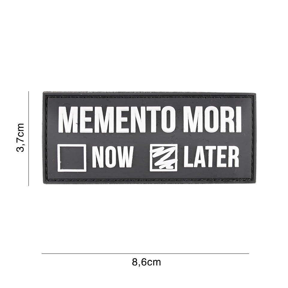 Gumová nášivka 101 Inc text Memento Mori Later - černá-bílá