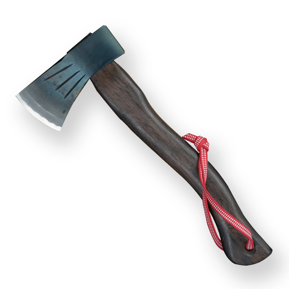 Tesařská sekera Warikomi/Yaki-Magari-e z uhlíkové oceli 1045. Sekera je určena pro přesné tesařské práce a štípání menšího dřeva. Topůrko je vyrobeno z opáleného bílého japonského dubu. Sekera je dodávaná s koženým pouzdrem.