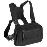 Náprsní kapsa se systémem pro nošení přes ramena, díky plochým popruhům se dá nosit i pod batohy, snadný přístup k vybavení.