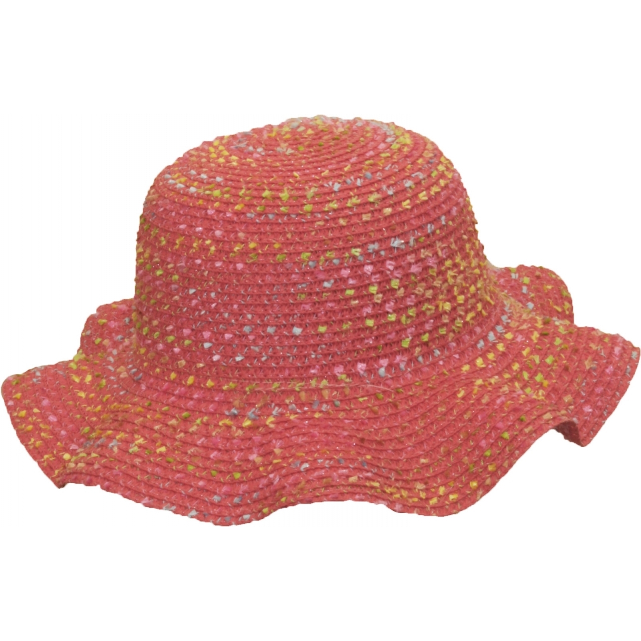 S jeho širokým a zvlněným okrajem nabízí tento klobouk dobrou ochranu proti slunečnímu záření. Vlnová vazba je úzce spojená a je ozdobena barevnými tečkami.