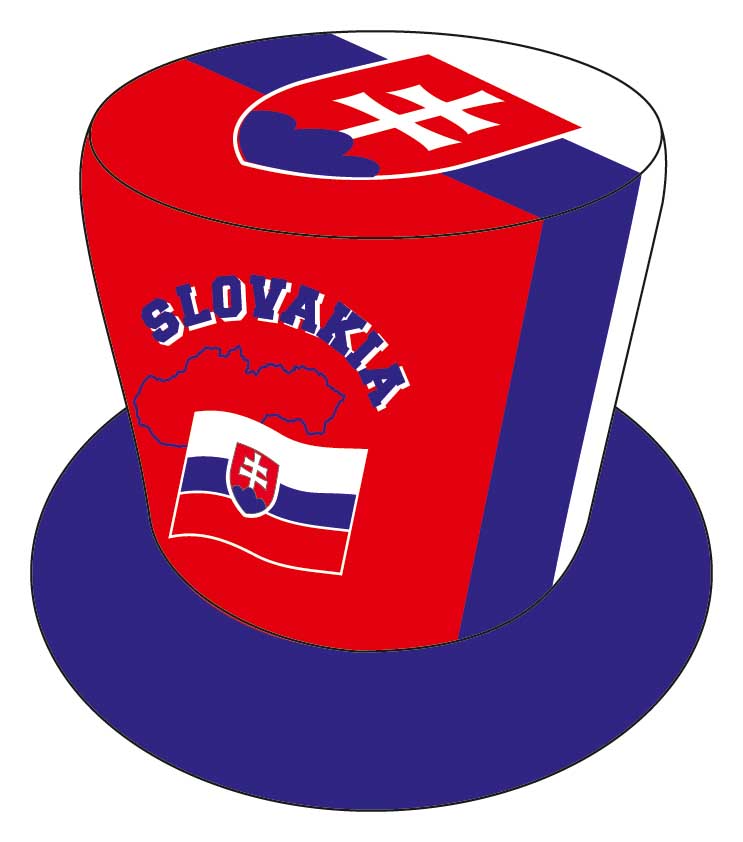 Velký klobouk s motivem Slovenska, mapou a vlajkou.
