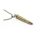 Náhrdelník na krk vyrobený z puškového náboje .22 Hornet s mosaznou nábojnicí a FMJ poměděnou střelou na nerezovém řetízku.