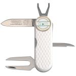 Profesionální golfový, kapesní nůž ergonomického tvaru v elegantním designu. Vyroben z vysoce kvalitních a odolných materiálů. I přes množství funkcí, kterými disponuje, váží pouhých 73g. Nástroje nože GOLF jsou vyrobeny z kvalitní nerezové oceli 420, která je extrémně odolná vůči korozi. Výhodou nože je jeho snadná ovladatelnost. Marker jde jednoduše vyjmout, vložit na green a opět připevnit na střenku nože. Vypichovátko Vám pomůže zachovat trávník v neporušeném stavu, klíč na spiky od bot zajišťuje profesionální komfort golfisty a hrot k vypíchnutí díry pro Teečka a odstranění nečistot je velmi praktickým pomocníkem, zejména v jarních a podzimních měsících. Čepel nože rozšiřuje možnosti využití i na mimo sportovní aktivity. Nůž Golf Vás podrží v těžkých chvílích na greenu i při pohodovém dni s přáteli.