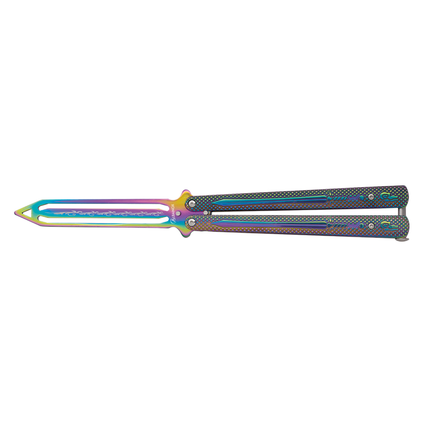 Kovový zavírací nůž, tzv. motýlek od španělské značky Albainox. Tréninkový, čepel není ostřená.