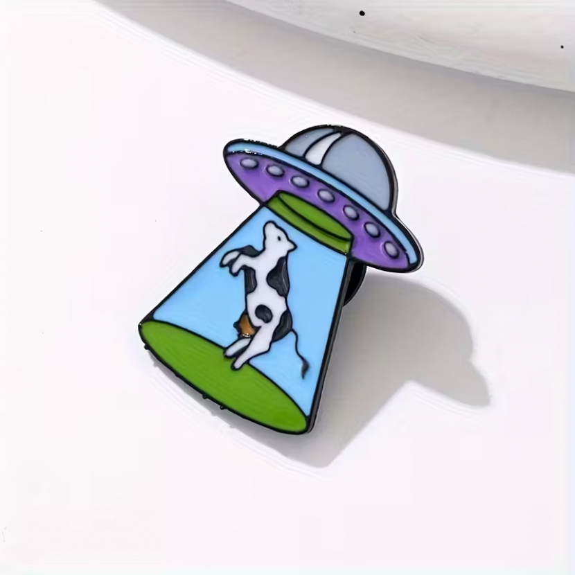 Odznak (pins) Mimozemšťané kradou krávu 3 x 2,3 cm - barevný-modrý