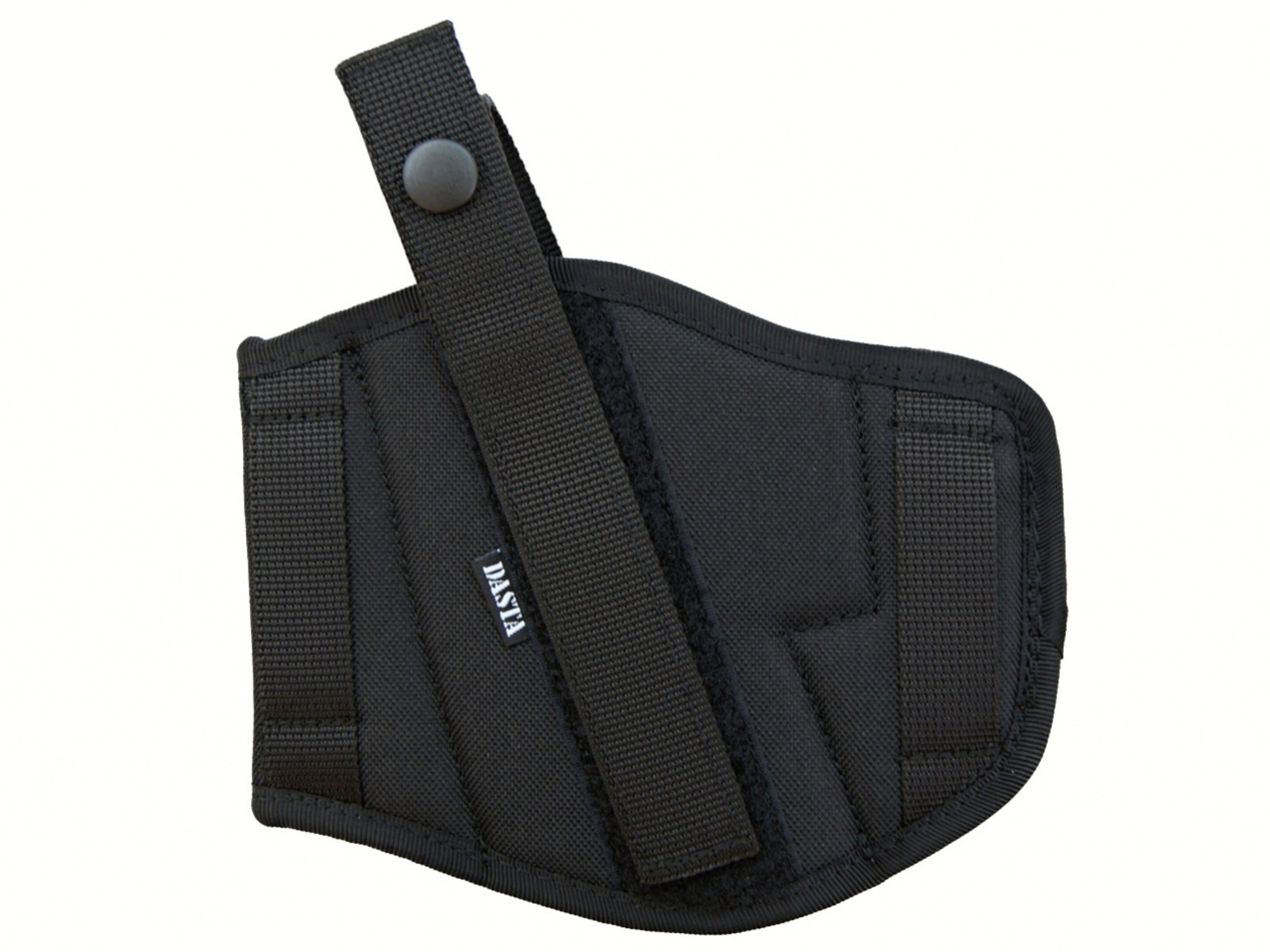 Vnější opaskové pouzdro značky DASTA. Řešeno jako oboustranné (přestavitelné) pro praváky i leváky. Lze použít pro skryté i otevřené nošení krátké palné zbraně. Pouzdro je fixováno na opasku pomocí dvojice provlékacích poutek šíře cca 6 cm. K zajištění zbraně v pouzdře slouží dvoudílný pásek s drukem (stiskacím knoflíkem).