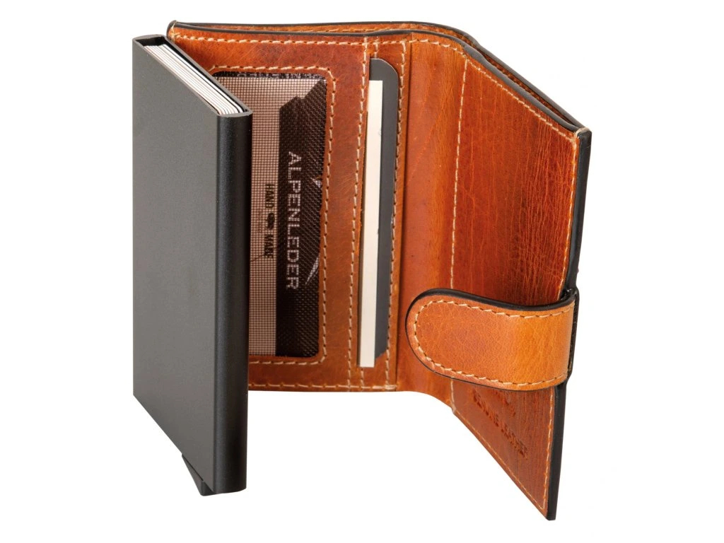 Kvalitní pánská peněženka s prostorem pro 7 bankovních karet uložené v bezpečném hliníkovém pouzdře s inteligentní mechanikou pro otevření. Přístup k nim je snadný - pomocí plastového vysunovacího táhla se karty vysunou s mírným odstupem pro vybrání té pravé.