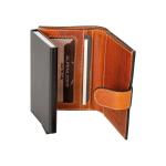 Celá peněženka je na uzavření koženou klapkou s patentem.