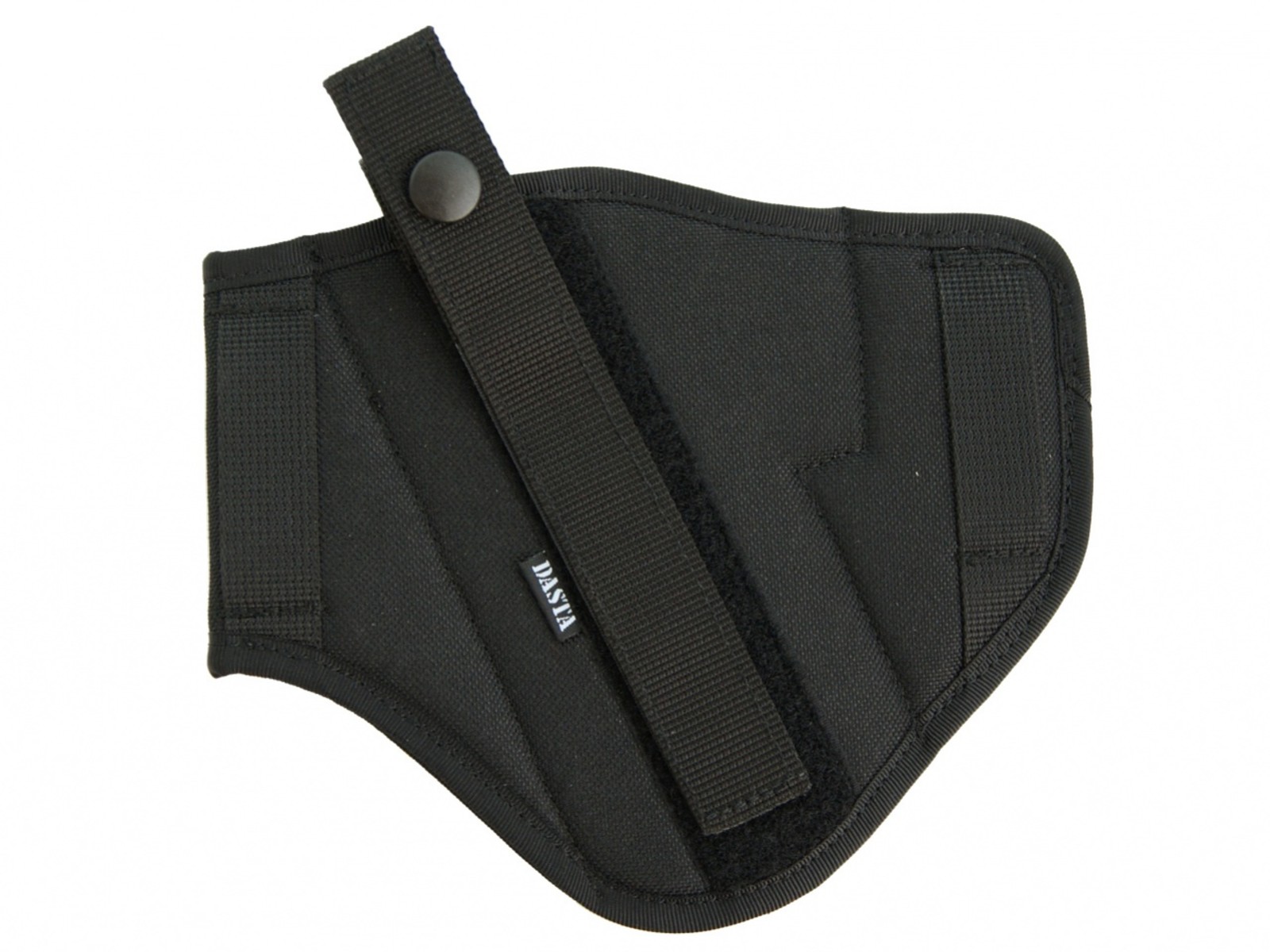 Vnější opaskové pouzdro značky DASTA. Řešeno jako oboustranné (přestavitelné) pro praváky i leváky. Lze použít pro skryté i otevřené nošení krátké palné zbraně. Pouzdro je fixováno na opasku pomocí dvojice provlékacích poutek šíře cca 6 cm. K zajištění zbraně v pouzdře slouží dvoudílný pásek s drukem (stiskacím knoflíkem).