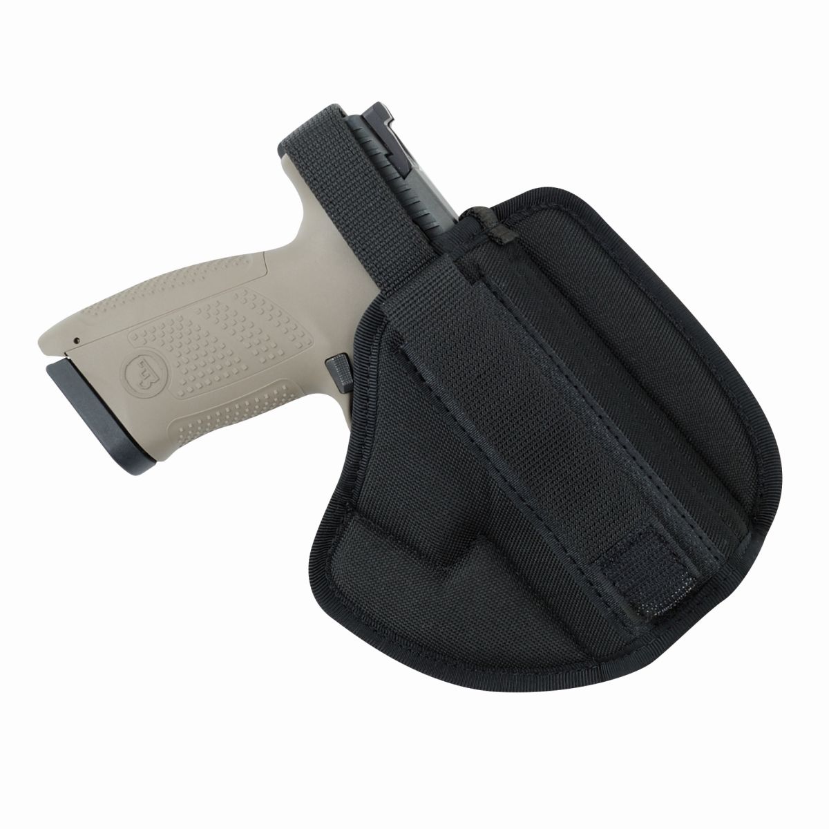 Pouzdro je fixováno na opasku pomocí dvojice provlékacích poutek šíře cca 5 cm. K zajištění zbraně v pouzdře slouží dvoudílný pásek s drukem (stiskacím knoflíkem). Pásek je možné délkově nastavit pomocí suchého zipu podle konkrétní zbraně. Správně nastavený pásek umožňuje poměrně rychlé rozepnutí palcem střílející ruky při zachování správného úchopu pažbičky zbraně. Pouzdro je navíc vybaveno i transportní pojistkou v podobě druhého pásku se suchým zipem. Pouzdro je vyrobeno z nylonu s podšívkou z jemného flauše proti poškrábání povrchu zbraně.