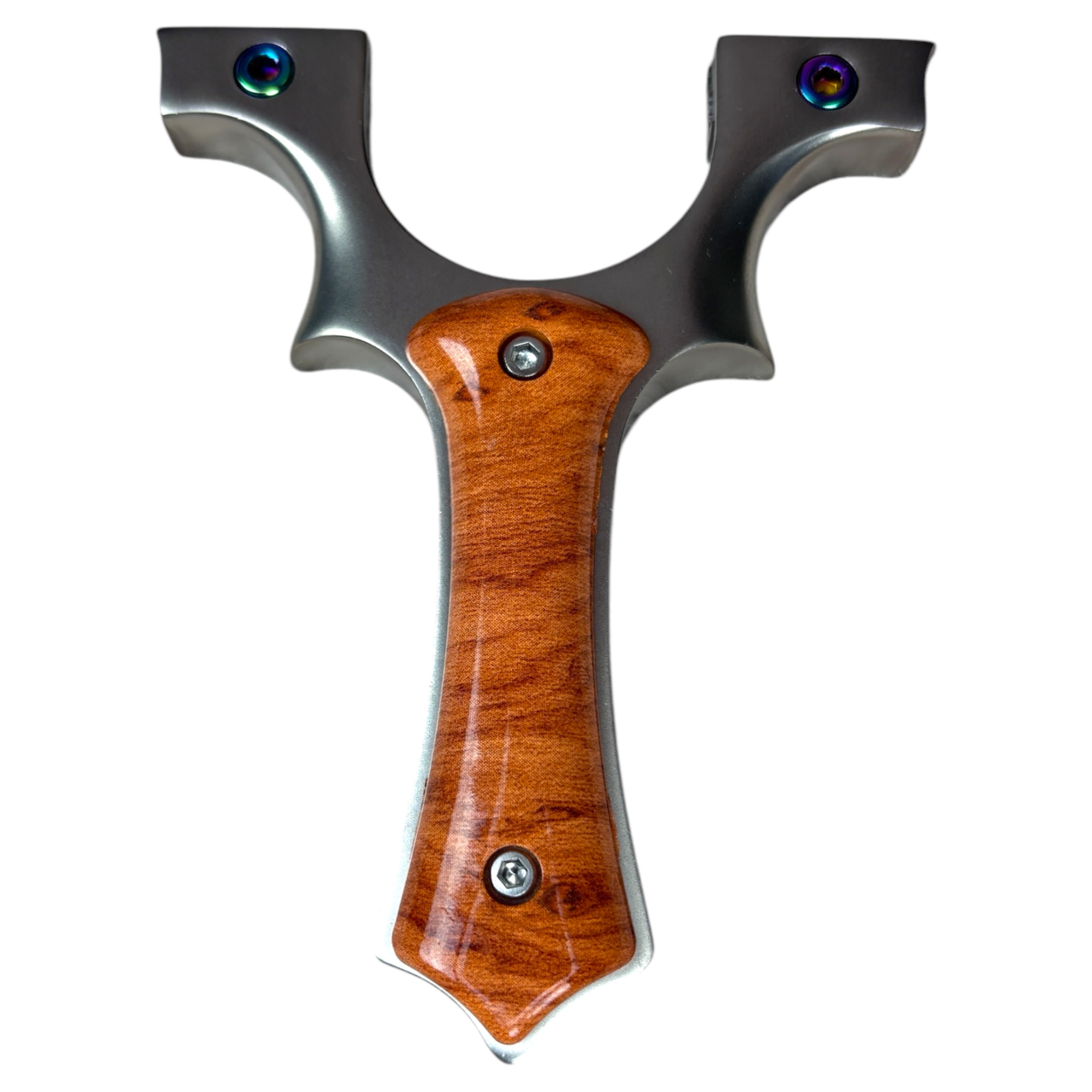 Vysoce přesný OTT prak, který je vyrobený z nerezové oceli v kombinaci s dřevěnou rukojetí s unikátní kresbou. Prak slouží jak hobby střelcům, tak najde své místo i zkušených prakostřelců.