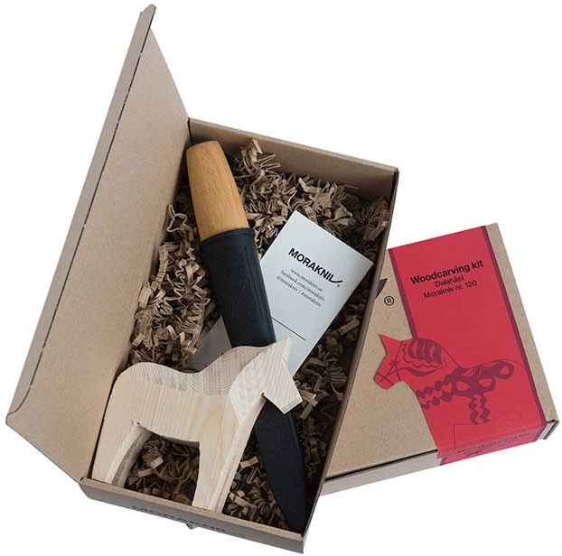 Řezbářská sada v dárkovém balení s instrukcemi pro vyřezání švédského symbolu - koně Dala.