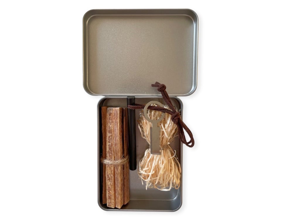 Sada na rozdělání ohně je vhodným doplňkem pro každého zálesáka, trampa nebo nadšence přírody. Sada poslouží jak začátečníkům, tak profesionálům, hodí se na zahradu, ke grilu či krbu. Plechová krabička se skládá ze dvou částí a díky přesnému zavírání v ní uchováte troud, tinder, křesadlo nebo jiné příslušenství mimo dosah vlkosti.