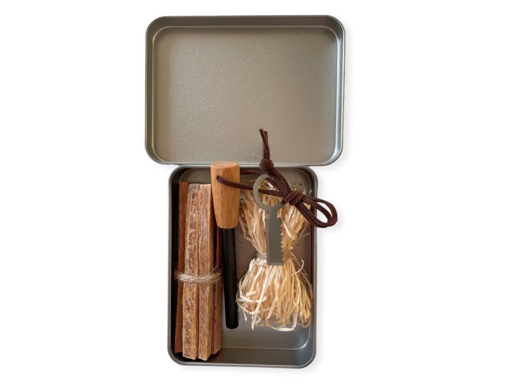 Sada na rozdělání ohně je vhodným doplňkem pro každého zálesáka, trampa nebo nadšence přírody. Sada poslouží jak začátečníkům, tak profesionálům, hodí se na zahradu, ke grilu či krbu. Plechová krabička se skládá ze dvou částí a díky přesnému zavírání v ní uchováte troud, tinder, křesadlo nebo jiné příslušenství mimo dosah vlkosti.
