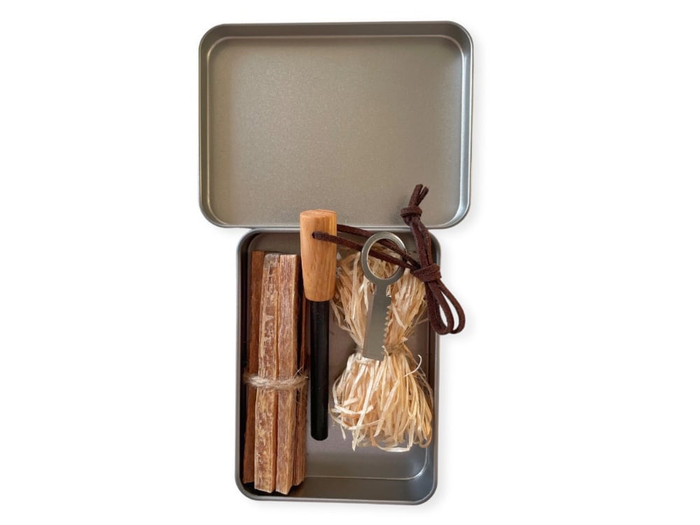 Sada na rozdělání ohně je vhodným doplňkem pro každého zálesáka, trampa nebo nadšence přírody. Sada poslouží jak začátečníkům, tak profesionálům, hodí se na zahradu, ke grilu či krbu. Plechová krabička se skládá ze dvou částí a díky přesnému zavírání v ní uchováte troud, tinder, křesadlo nebo jiné příslušenství mimo dosah vlkosti.