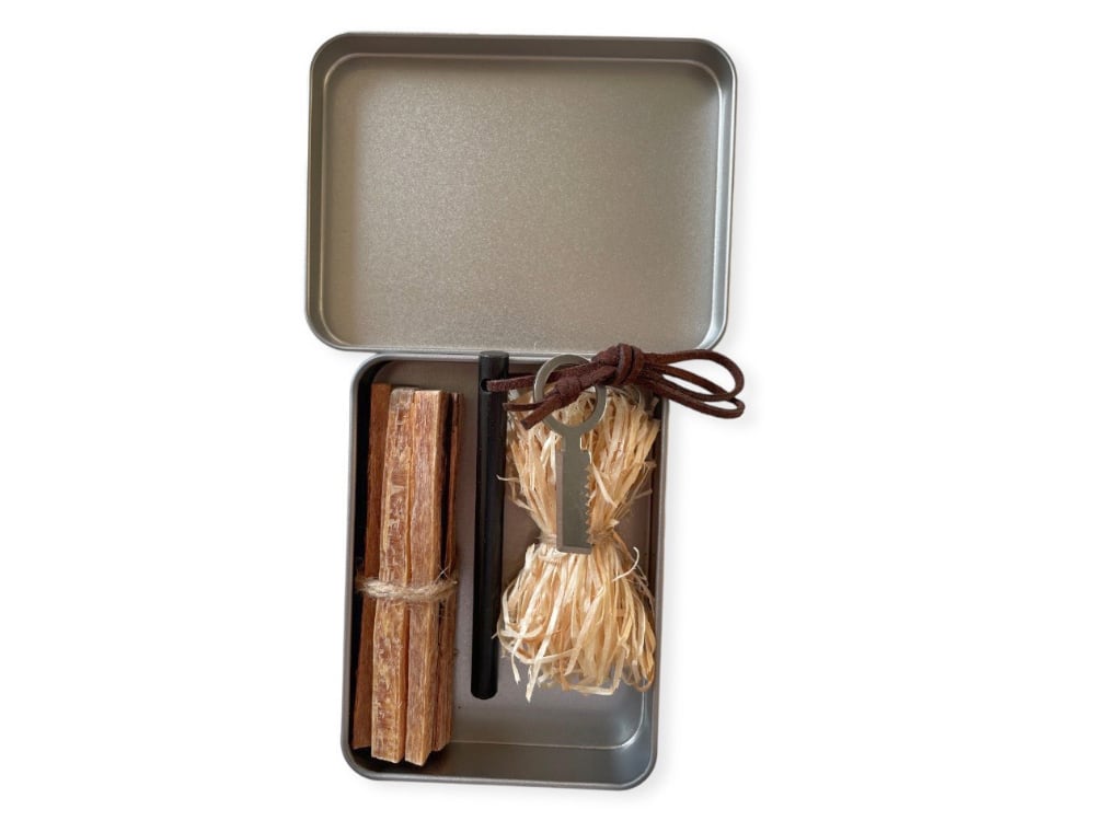 Sada na rozdělání ohně je vhodným doplňkem pro každého zálesáka, trampa nebo nadšence přírody. Sada poslouží jak začátečníkům, tak profesionálům, hodí se na zahradu, ke grilu či krbu. Plechová krabička se skládá ze dvou částí a díky přesnému zavírání v ní uchováte troud, tinder, křesadlo nebo jiné příslušenství mimo dosah vlkosti.