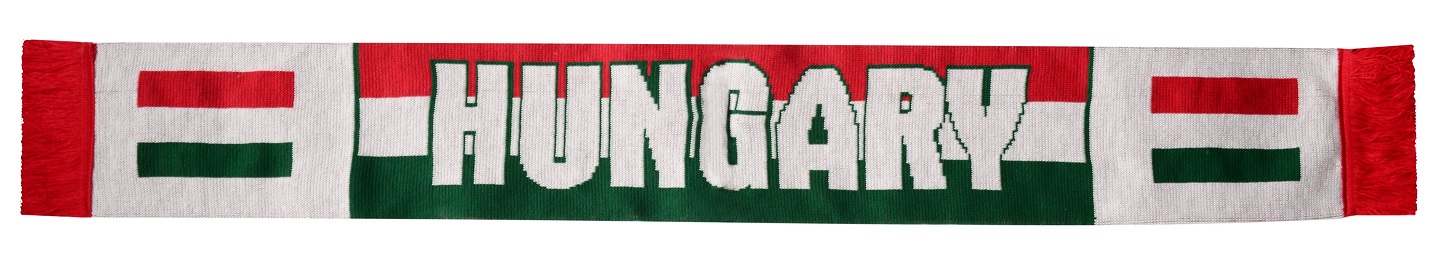 Pletená šála s motivem Maďarska.