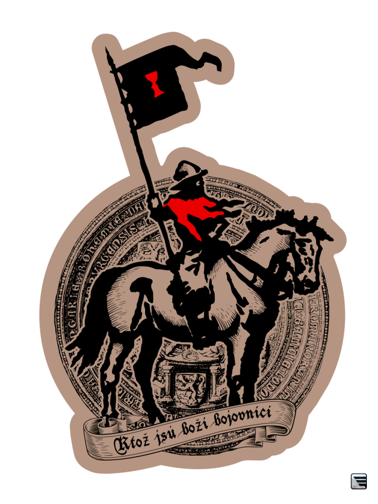 Samolepka s motivem Husita - Ktož jsú boží bojovníci.