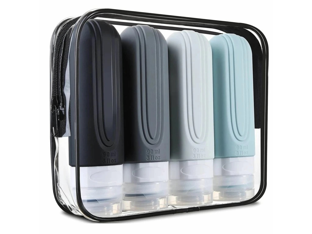 Tato sada silikonových cestovních lahviček je praktická a hygienická sada pro uložení kosmetiky na cestách. Měkké, flexibilní lahvičky vyrobené z vysoce kvalitního silikonu usnadňují dávkování a těsně přiléhající víčka zabraňují úniku. Sada obsahuje čtyři nádobky v tlumených barvách a praktickou kosmetickou taštičku, ideální pro přepravu v kufru nebo batohu.